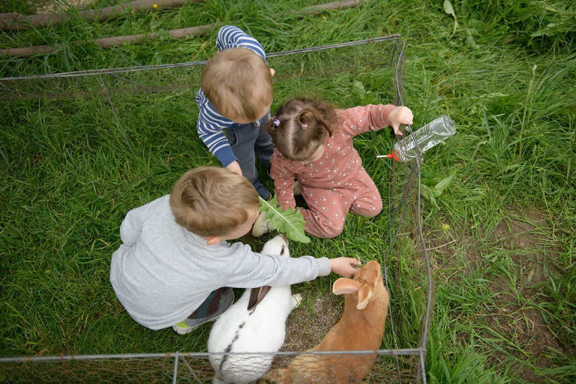 Au coeur d'une micro-ferme bio, entourée d'arbres, de légumes et de petits animaux, les enfants évoluent dans un lieu unique où la nature est au centre.